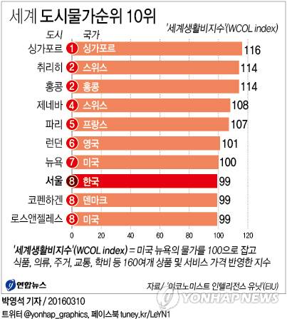 !['이코노미스트 인텔리전스 유닛'(EIU)이 발표한 '전세계 생활비'(Worldwide Cost of Living) 상위 10위. 2016.3.10 [EIU 홈페이지 캡처]](https://img2.daumcdn.net/thumb/R658x0.q70/?fname=http://t1.daumcdn.net/news/201603/10/yonhap/20160310172853798yzbz.jpg)