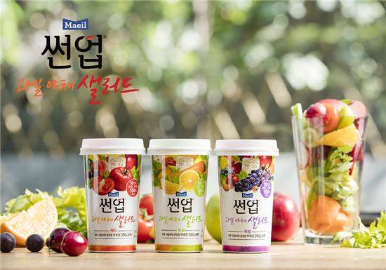 매일유업의 10가지 과일야채 100% 주스 ‘썬업 과일야채샐러드’는 하루 한 잔(200ML 기준)으로 하루 과일야채 권장량 부족분 200g을 채울 수 있어 건강한 다이어트를 도와주는 제품이다.