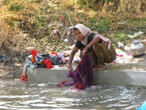 | 개울에서 빨래하는 달리트 출신 여인. |