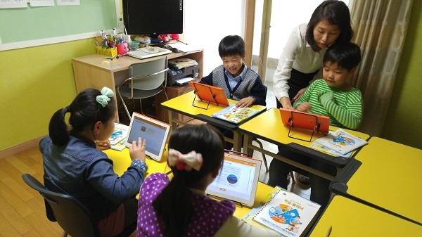 ‘웅진북클럽 공부방’은 독서∙학습 융합 서비스인 ‘웅진북클럽 스터디’로 초등학교 주요 과목을 수업하는 업계 최초의 스마트 공부방이다.