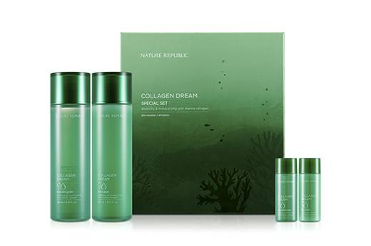 칙칙하고 늘어진 피부에 탱탱함과 수분감을 가득 채워주는 탄력 케어 라인. ‘콜라겐 드림’ 라인은 마린 콜라겐과 아사이베리가 함유돼 탄력을 강화하고 생기있는 피부로 가꾸어 주는 주름개선 기능성의 고보습, 고영양 제품이다. 바다의 에너지를 담은 갈조 추출물이 강력한 보습을 전달하고 펩타이드 성분이 피부 탄력을 더해준다.