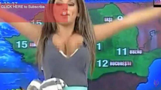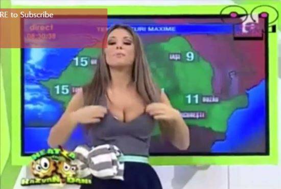 루마니아의 미녀 기상캐스터가 일기예보 생방송 중 가슴을 노출하는 사고가 벌어졌다.