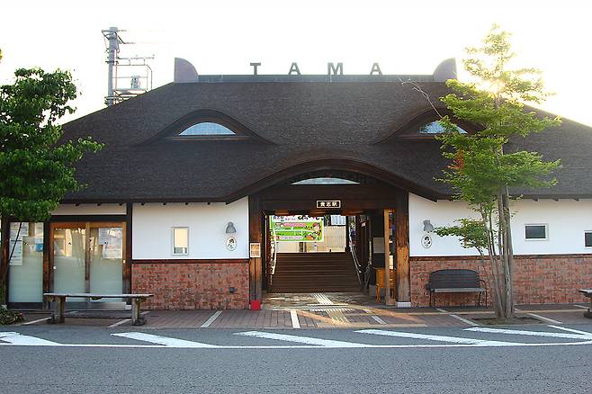 그리하여 '슈퍼역장 타마'가 탄생하고 종착역인 키시역도 리모델링하여 고양이 모양의 역사가 되었습니다. 노송껍질로 리모델링한 이 키시역은 정면에서 바라보면 영락없는 고양이 모습입니다.