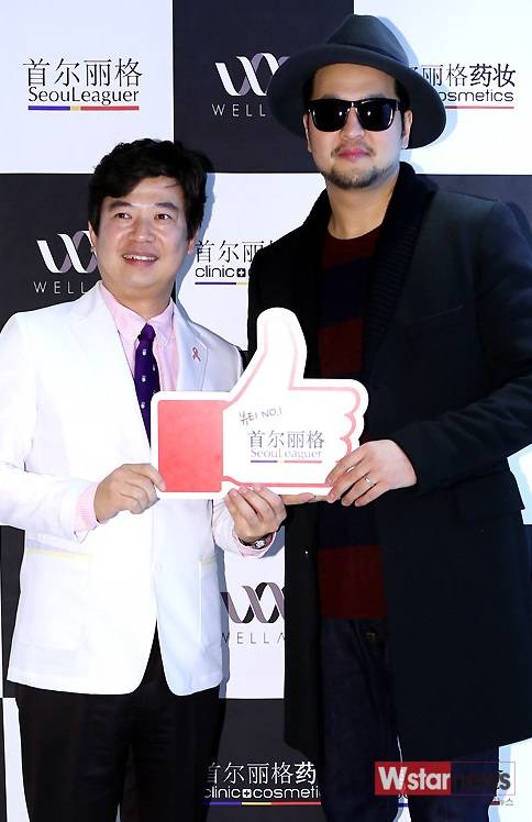 이날 오픈 행사에 참석한 가수 김태우는 서울리거 박상근 원장과 포토타임을 갖고 있다.