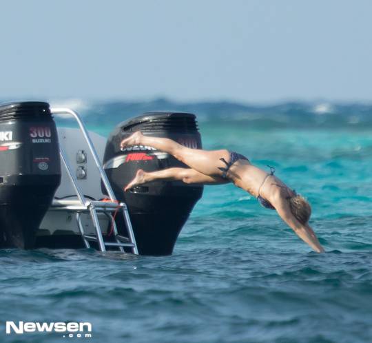 이날 로렌스가 바하마에서 눈부신 자태로 다이빙을 하고 있다.