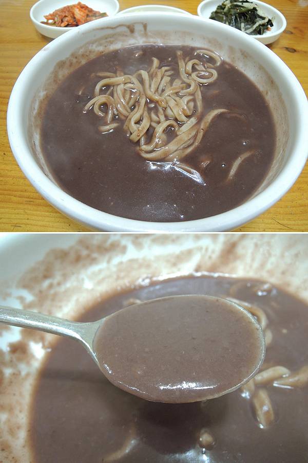 국산 팥을 사용해 만든다는 팥칼국수는 구수하고 진한 팥 국물에 기계로 뽑아낸 국수가 아닌 투박한 모양의 손칼국수를 넣어 끓여 내는데 걸쭉한 만큼 진한 팥 맛이 인상적이다. 팥칼국수는 취향에 따라 설탕을 넣어서 먹기도 하는데, 팥이 가지고 있는 구수함과 달콤함을 모두 맛보려면 처음에는 백김치와 함께 구수한 팥칼국수를 즐기다가 국수를 다 먹었을 즈음 남은 팥 국물에 설탕을 넣어 마지막에 달콤한 단팥죽으로 마무리하는 방법도 있다.
