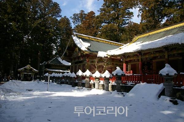 눈 속에 묻힌 일본 닛코 동조궁(東照宮)