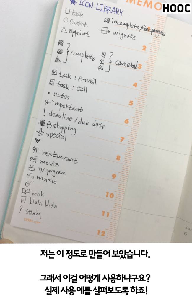 불렛은 일정 관리를 위한 아이콘을 뜻합니다. 자신에게 필요한 아이콘을 직접 만들고 추가할 수 있습니다.