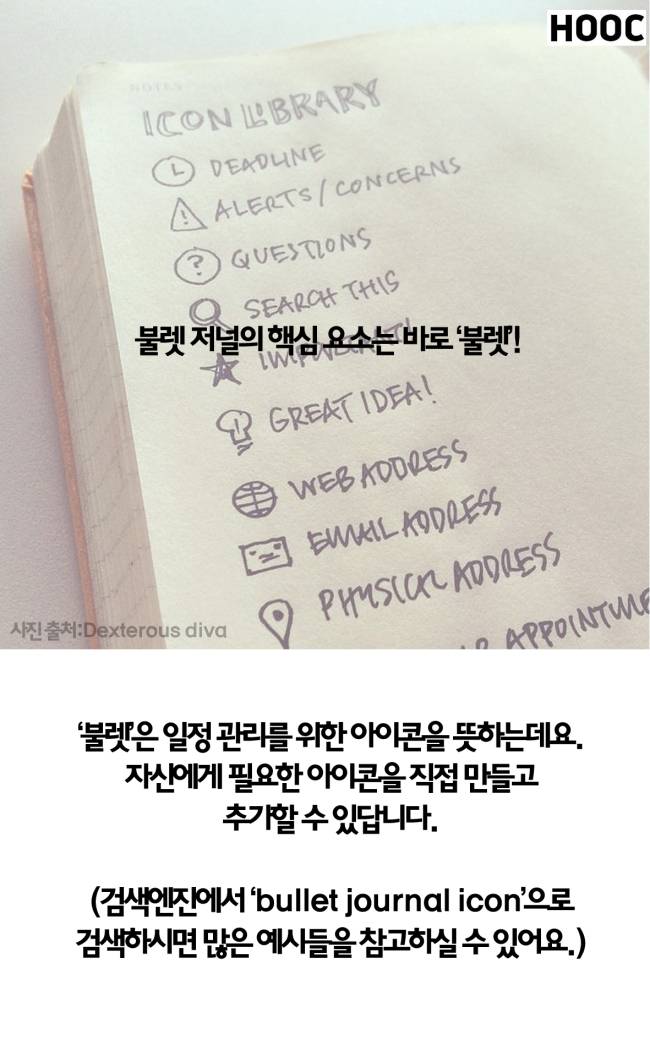 검색 엔진에서 ‘bulletjournal icon’으로 검색하시면 많은 예시들을 참고할 수 있습니다.