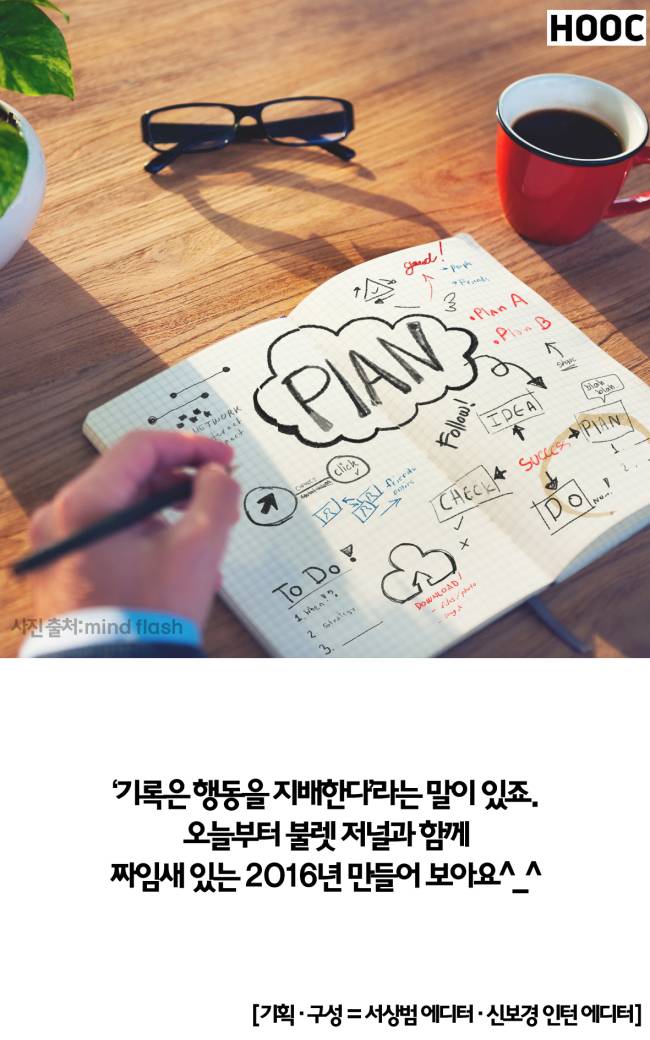 기록은 행동을 지배한다라는 말이 있죠. 오늘부터 불렛 저널과 함께 짜임새 있는 2016년을 만들어 보시는 것은 어떨까요?
