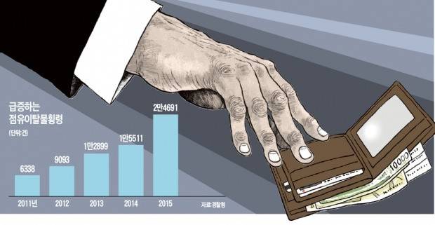 17일 경찰청에 따르면 지난해 적발된 점유이탈물횡령 사건은 2만4691건으로 한 해 전의 1만5511건보다 60% 가까이 증가했다. 2011년 6338건 이후 최근 5년간 연평균 35%씩 급증하는 추세다.