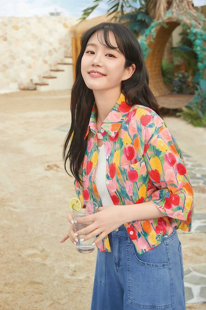 또 다른 화보에서는 라이트 베이지 컬러의 린넨 자켓에 플로럴 패턴 블라우스와 루즈핏 와이드 팬츠를 매치해 휴가철 여행지에서도 입기 좋은 스타일리시한 캐주얼룩을 완성했으며, 비비드한 컬러의 플라워 프린팅 블라우스에 초커넥 반팔니트, 데님 와이드 팬츠를 매치하여 경쾌하고 산뜻한 무드의 타일링을 선보였다.