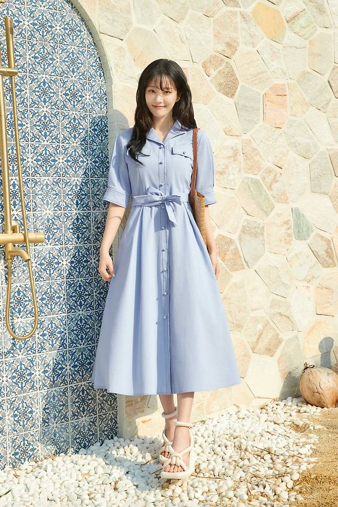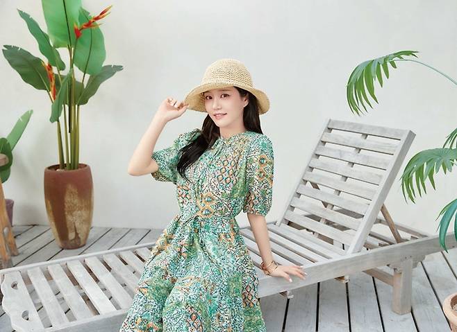 마지막으로는 벨티드 스타일의 블루 롱 원피스를 착용해 우아한 실루엣과 함께 시원하고 여유로운 썸머 무드를 연출했으며, 이어서 에스닉 패턴의 폴리 롱원피스와 밀짚모자를 매치하여 감각적인 보헤미안 스타일의 바캉스룩을 선보였다.