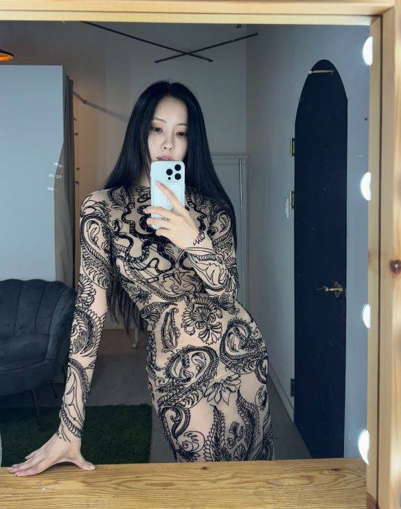 효민, 누드톤 밀착 드레스+잘록 허리 노출...'패완몸' 입증