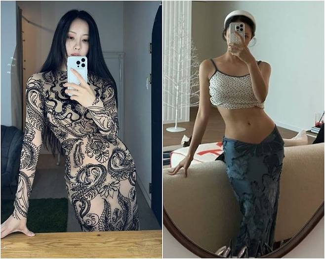 사진 속 효민은 누드톤 밀착 드레스로 볼륨감 넘치는 몸매를 뽐내는가 하면, 청바지와 청재킷으로 멋을 내며 가을 패션을 선보이기도 했다.