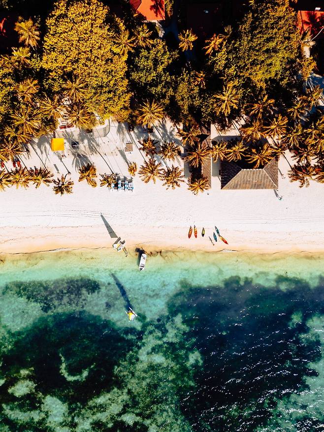입수한 지 1분도 안 됐을 즈음, 갑자기 투어 가이드가 소리쳤다. '여기에요!' 헤엄쳐 가 보니 매부리바다거북(Hawksbill Sea Turtle)이 양팔을 휘저으며 잠수 중이다. 훌륭한 오프닝이었으나 그건 시작에 불과했다. 엄청난 양의 산호초와 물고기 떼가 꿈결처럼 눈앞에 일렁인다. 보통의 스노클링은 바다에서 물고기를 찾는 느낌이라면, 이건 물고기 사이로 바닷물이 있는 수준. 먹이로 인위적으로 유인할 필요도 없다. 운이 좋으면 야생 만타가오리부터 너스샤크까지 흔쾌히 수영 메이트가 돼 준다. 거대한 아쿠아리움 한가운데에 예고도 없이 떨어진 기분. 당황스러운데 경이롭고, 두려우면서 황홀하다.