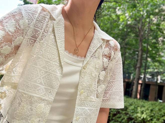 화사한 레이스 셔츠 위로 오후의 햇살이 부드럽게 번져요