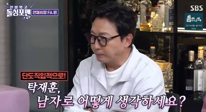 과거 탁재훈과 가상 연애 프로그램에서 호흡을 맞췄던 황신혜는 "탁재훈을 남자로서 어떻게 생각하나"라는 질문에 "뭐 나쁘지 않다"라고 쿨 하게 답했다. 이에 탁재훈은 "예쁜 여자들은 적극적이지 않다"라는 말로 웃음을 자아냈다.