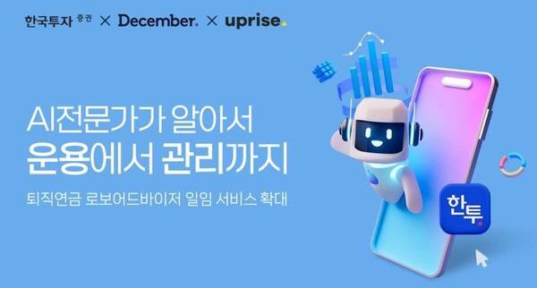 [사례뉴스=김주연 인턴기자] 한국투자증권은 오는 9일부터 업라이즈투자자문과 협력해 AI(인공지능) 기술을 활용한 퇴직연금 로보어드바이저(RA) 일임 운용 서비스를 출시한다고 2일 밝혔다. 지난 4월 디셈버컴퍼니와 제휴해 퇴직연금 RA 서비스를 출시한데 이어 추가로 상품을 내놔 고객의 다양한 투자 성향과 수요를 충족시키겠다는 계획이다.