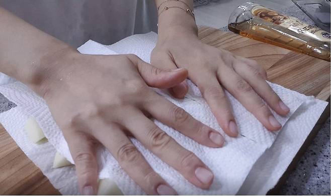 저는 위아래 키친타월을 깔아 한 번 더 꾹꾹 눌러주며 물기를 제거해 주었어요
