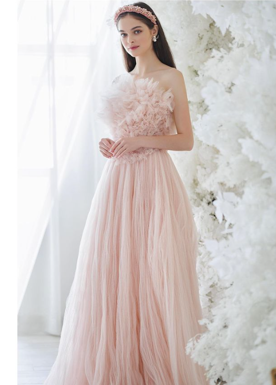 김보경이 선택한 드레스는 튜브톱 드레스. 심플한 튜브톱 상의에 프릴 드레스로 풍성한 느낌을 준다.