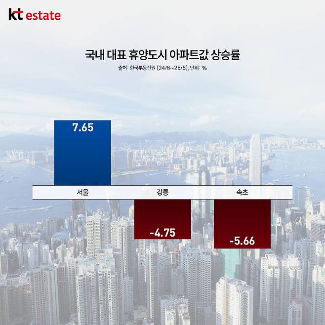 최근 1년간 아파트 매매가 상승률은 서울이 평균 7.65% 오를 때, 속초와 강릉은 평균 5.66%, 4.75% 떨어졌습니다.