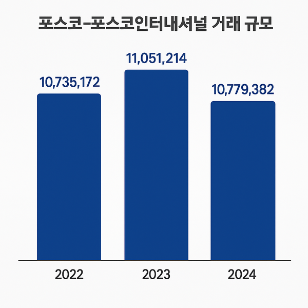 4일 포스코에 따르면 지난해 계열사와의 상품·용역 거래에 따른 매출의 상당 부분은 포스코인터내셔널에 철강재를 공급하면서 발생했다. 포스코인터내셔널에 대한 상품 매출은 10조7794억원으로 전년(11조512억원)보다 다소 줄었지만 그룹 내 최대 거래처라는 점에는 변함이 없다.