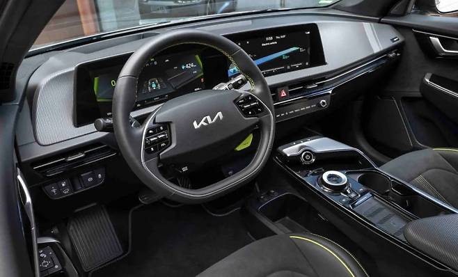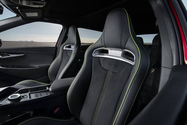기아 ‘EV6 GT’의 실내에는 스웨이드 스포츠 버킷 시트가 적용돼 훨씬 뛰어난 승차감을 갖췄고, 도어 트림, 콘솔, 시트 등에는 네온 컬러 스티치 액센트를 적용, 차량 내부를 더욱 차별화시켰다.