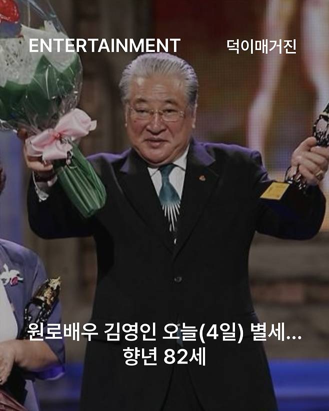 4일 연예계에 따르면 김영인은 이날 오전 6시 55분 세상을 떠났습니다. 고인은 반세기 넘게 한국 영화와 드라마 현장에서 활동하며 묵직한 존재감을 남긴 배우입니다.