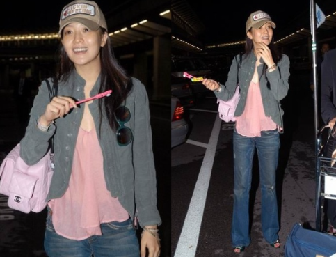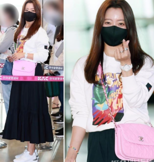 김희선의 핑크 사랑은 공항패션에서도 드러났다. 핑크핑크한 샤넬 체인백으로 캐주얼룩에 포인트를 준 그녀는 소녀감성 가득한 무드로 코디했다.