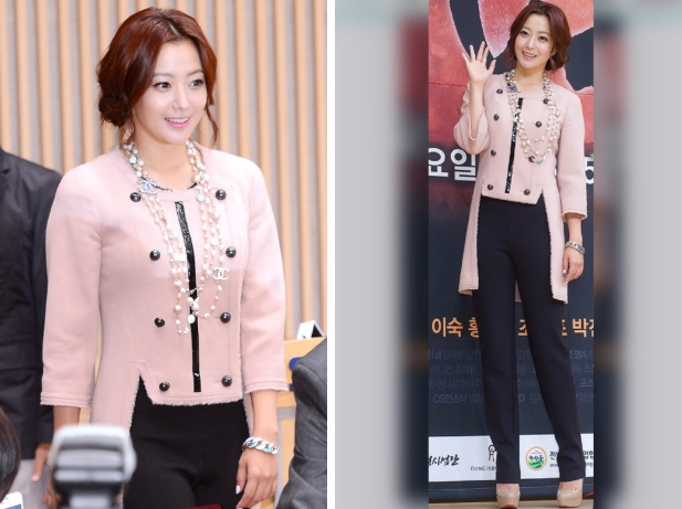 샤넬의 화려하고 로맨틱한 무드와 찰떡이라는 김희선. 이민호와 같이 출연한 드라마 '화신' 제작발표회에서 샤넬 풀착장으로 나타난 그녀는 핑크 샤넬 트위드 자켓에 샤넬 진주 목걸이를 매치하여 샤넬의 클래식한 우아함을 한껏 뽐냈다.