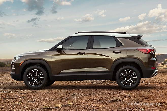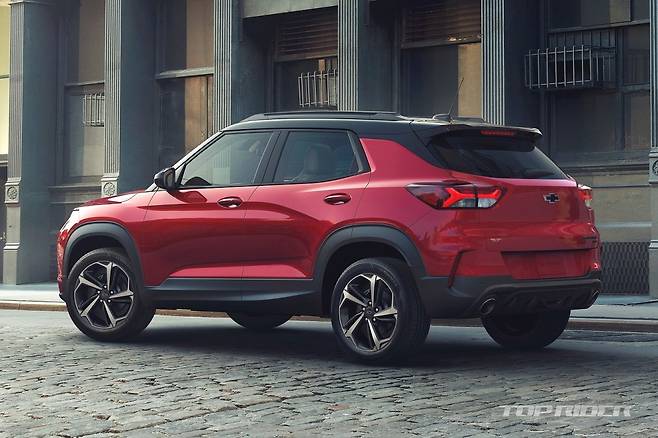 트랙스 크로스오버의 차체 크기는 전장 4540mm, 전폭 1825mm, 전고 1560mm, 휠베이스는 2700mm다. 트레일블레이저는 전장 4425mm(-115mm), 전폭 1810mm(-15mm), 전고 1660mm(+100mm), 휠베이스 2640mm(-60mm)다. 전고 제외 트랙스 크로스오버가 크다.