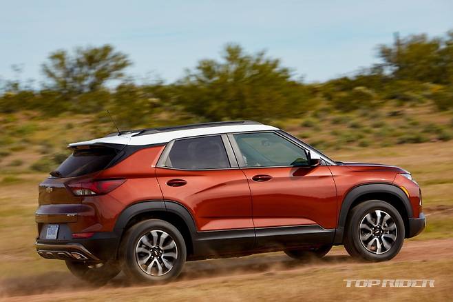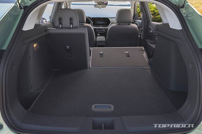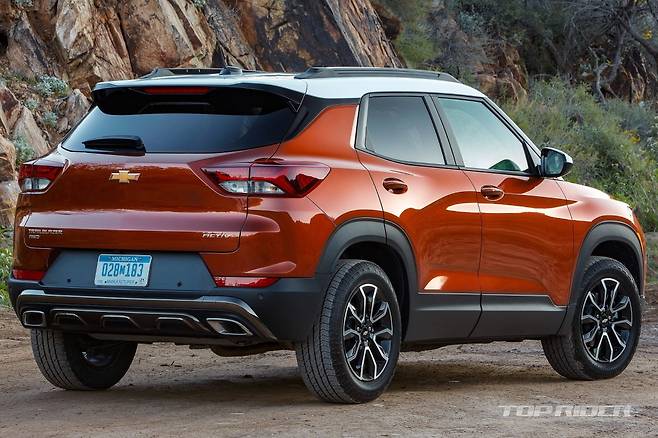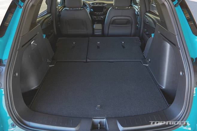 트렁크 용량은 트레이블레이저가 크다. 트랙스 크로스오버의 트렁크 용량은 기본 414ℓ, 최대 1405ℓ며 트레일블레이저는 기본 460ℓ, 최대 1470ℓ다. 트랙스 크로스오버는 전륜구동으로 고정됐지만 트레일블레이저는 9단 자동변속기가 포함된 스위처블 AWD를 선택할 수 있다.