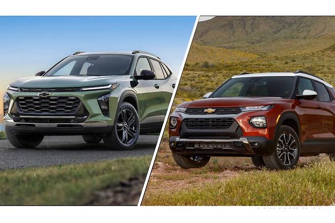 쉐보레는 트랙스 크로스오버의 사전계약을 22일 시작했다. 트랙스 크로스오버는 SUV와 세단의 장점이 조합된 준중형 세그먼트다. 쉐보레 트레일블레이저보다 차체 크기가 크고 가격은 저렴한데, 파워트레인과 2열 열선 시트 등 일부 옵션은 차이가 있다. 두 사양을 비교했다.