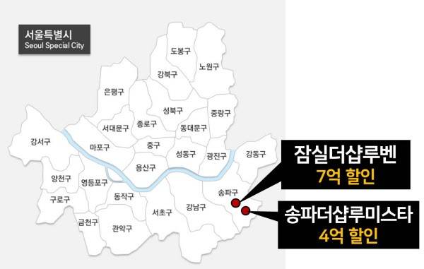 이런 파격 할인을 하는 단지가 한 곳 더 있는데요. 같은 송파구에 ‘더샵 송파 루미스타’도 이번주 최대 4억원 정도 몸값을 낮춰서 재분양을 진행하고 있습니다.