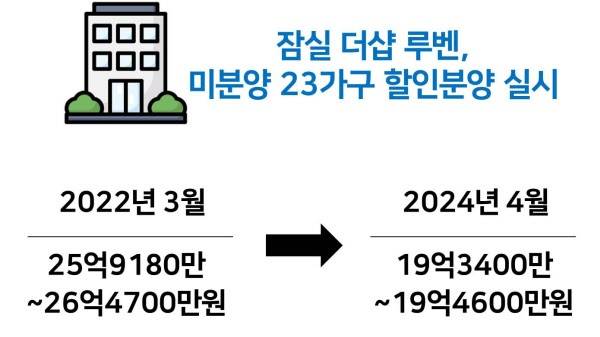 [땅집고] 이번주 분양시장에 굉장히 파격적인 사례가 나왔습니다. 서울 잠실 아파트가 무려 7억원이나 할인 분양에 나선 겁니다. 서울 송파구 ‘잠실 더샵 루벤’인데요. 대체 얼마였길래 7억원을 할인하나 봤더니, 40평 아파트를 26억원대에 분양했다가 2년만인 올해, 분양가를 19억원대로 낮춰서 다시 내놨습니다.