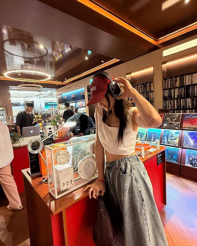 여기에 버건디 컬러의 볼캡을 눌러쓴 모습은 전체적인 스타일에 스트리트한 무드를 더했으며, 어깨에 툭 걸친 브라운 반달 숄더백은 실용성과 패션을 모두 잡은 선택으로 눈길을 끈다. 무엇보다도 시은미의 장신이 와이드 데님의 루즈한 핏을 더욱 멋스럽게 살려내며, 마치 런웨이를 걷는 듯한 실루엣을 완성한다.
