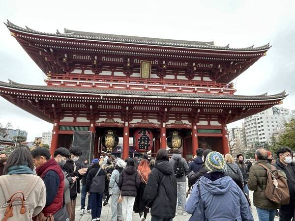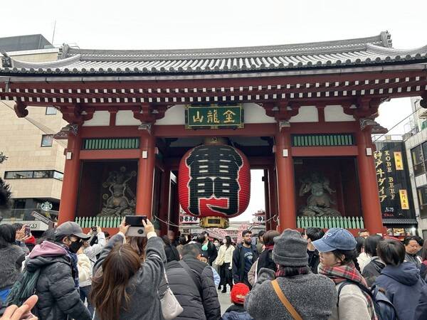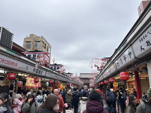 아사쿠사역에 내려 밖으로 나가니 흥미로운 거리가 시작됐다. 하지만 역에서 나오자마자 마주하는 건? 뭔가 독특한 볼거리가 아니라 아이러니하게도 엄청난 규모의 사람들이다. 일본어 간판만 뺀다면 마치 서울의 인사동이나 명동 거리에 와 있는 느낌이랄까? 일본에서 오버투어리즘이 이슈라더니, 왜 그런지 바로 이해가 된다.