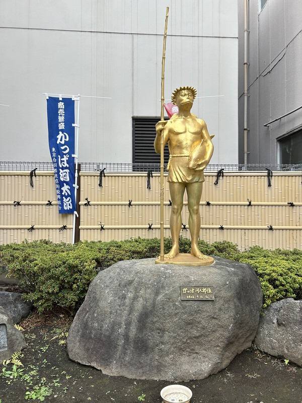 '갓파의 가와타로 동상'인데, 갓파바시 거리 90주년을 기념해 2003년 10월에 건립한 동상