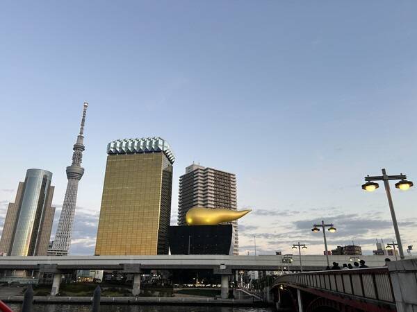 유람선 매표소를 나오며 건너편으로 보이는 도쿄스카이트리와 아사히맥주 본사 건물을 카메라에 담아봤다.