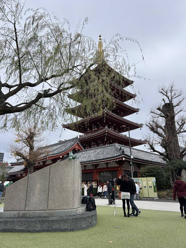 센소지 절에서 유명한 건 다른 편 마당의 오층탑으로, 942년에 세운 것이란다. 하지만 이 오층탑도 화재와 전쟁 등으로 여러 차례 소실돼 1648년에 재건했고, 이어 2차 세계대전 때 또다시 소실돼 1973년에 콘크리트 구조로 다시 재건했다 한다.