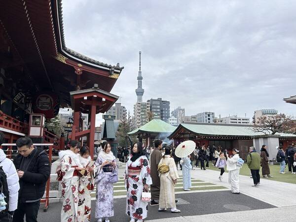 센소지에서도 우리나라나 중국의 다른 유명 관광지들처럼 일본 전통의상을 입고 사진촬영을 하는 관광객들을 심심치 않게 볼 수 있다.