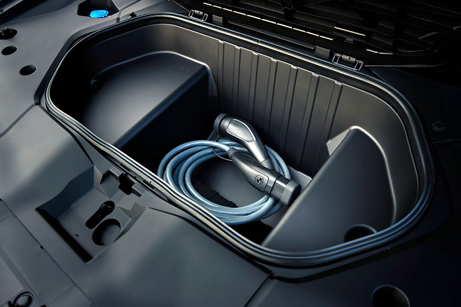 또한 양방향 충전(V2L) 기능도 제공돼 외부 전자기기 사용도 가능합니다. 여기에 NACS(테슬라용) 포트를 기본 장착하며, CCS 어댑터도 제공됩니다. 충전 포트는 센서식 자동 개폐방식입니다.