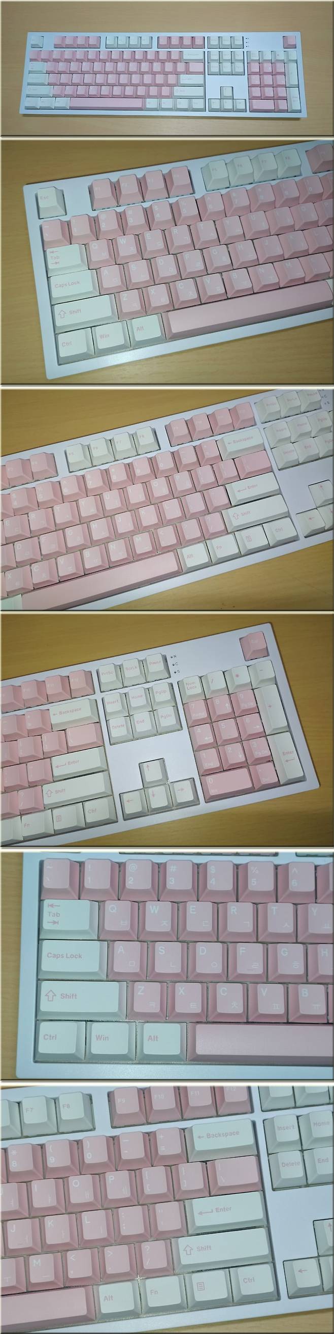 저가형의 ABS 키캡이 아닌 내구성이 뛰어나다고 알려진 고품질 투톤 PBT 키캡으로 되어 있습니다.