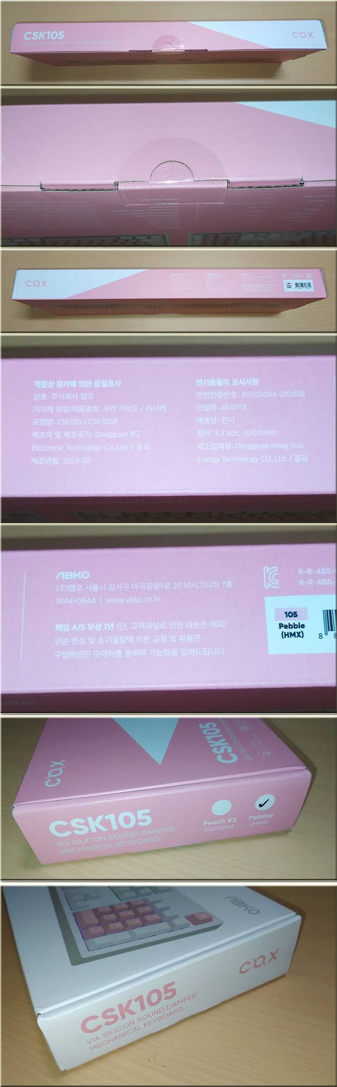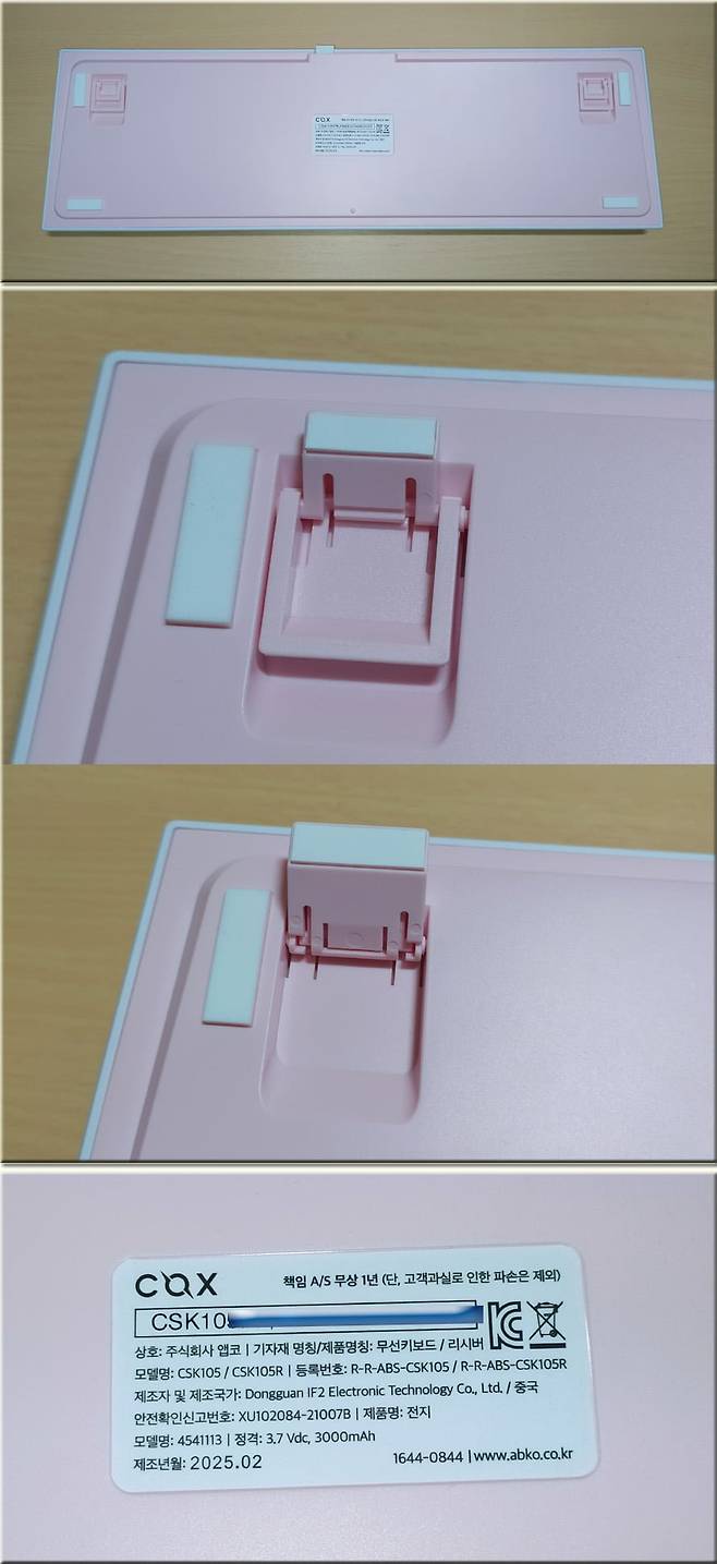 이번에 필자가 사용하게 될 제품은 COX CSK105 기계식 키보드 핑크 색상 버전의 페블축입니다. 저소음피치축과 페블축 둘 다 리니어 타입인데, 저소음 피치축의 경우 지극히 부드러운 타건감이 특징이며,