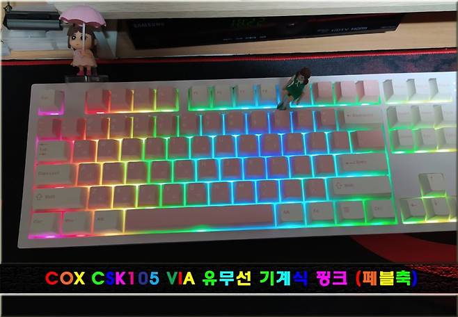 [ COX CSK105 VIA 실리콘 사운드 뎀퍼 유무선 기계식 핑크 (페블축) - 한글 타자 타건 동영상 ]