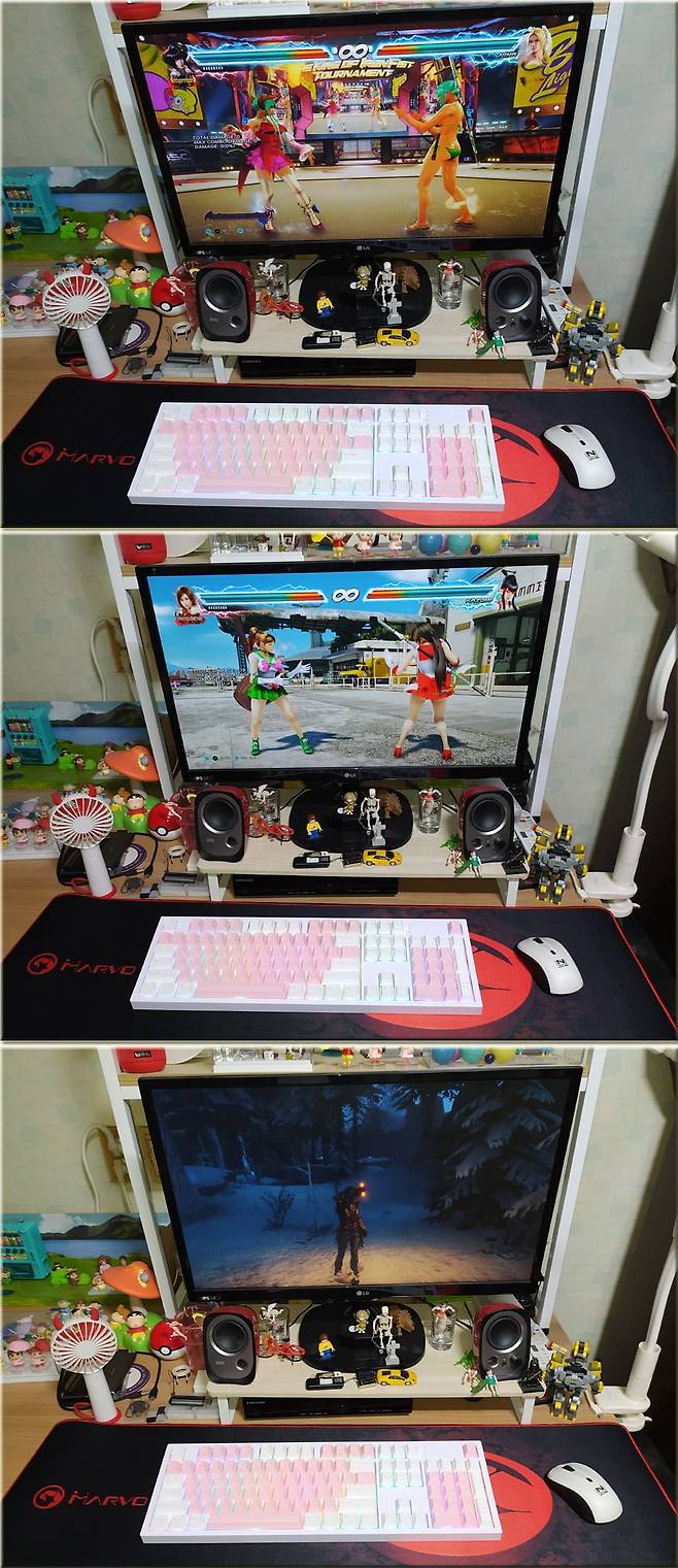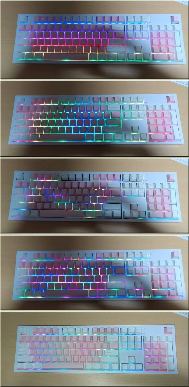 선명하고 아름다우면서 다채로운 RGB LED를 제공하여 시선을 사로잡으면서 PBT 재질 2컬러 고품질 키캡 적용으로 내구성이 무척 뛰어나며, 0.4cm 두께로 설계된 흡음 구조와 풀 실리콘 기반의 가스켓 구조를 적용해 통울림을 효과적으로 차단하여 효과적으로 통울림을 잡아주며 쫄깃쫄깃하면서도 지극히 부드러운 타건감과 빠른 반응속도를 보여주는 제품으로 윈도우 뿐만 아니라 맥OS도 지원하며 유선과 무선, 블루투스를 모두 지원하여 활용도가 다양한 기계식 게이밍 키보드 제품이라고 생각하면서 이상으로 사용기를 마치겠습니다.