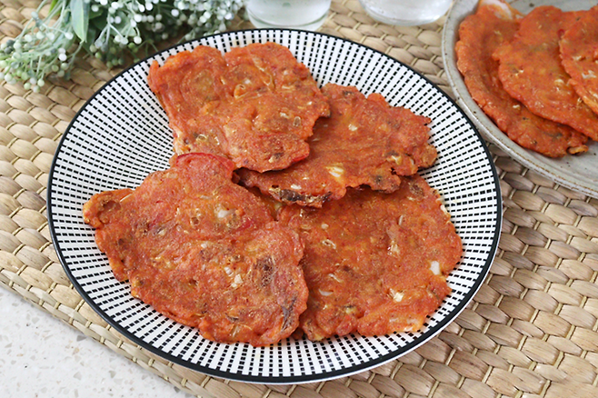 가장자리가 노릇해지면 뒤집어 반대쪽도 구워 주세요. 뒤집개로 가장자리를 살짝 눌러 주면 식감이 더욱 바삭해집니다.