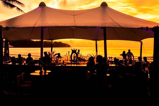 저녁이 되면 화려한 비치 클럽을 즐길 수 있습니다.