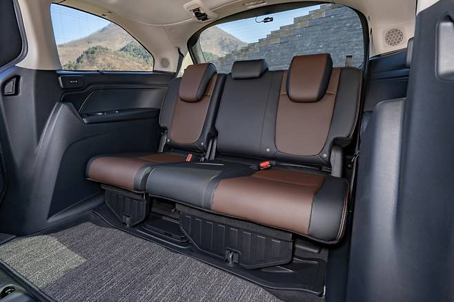 먼저 뒷좌석에 탔다. 사실 첫인상은 아주 반갑진 않았다. 시트 방석 길이가 비교적 짧아서다. 카니발과 시에나는 허벅지를 든든하게 받쳤는데, 오딧세이의 2열 방석은 2% 허전하다. 게다가 앞뒤 슬라이딩 범위도 제한적이다. 탈착식 구조의 한계다. 따라서 경쟁모델들은 리무진급 공간도 만들 수 있지만, 오딧세이는 언제나 2·3열 탑승객에게 평등하다.